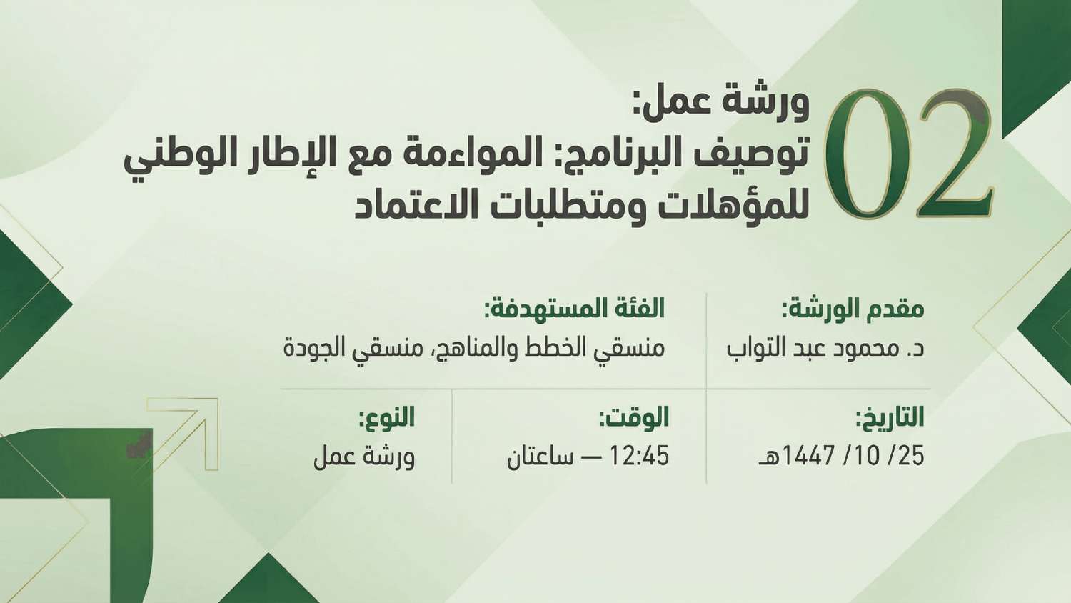 سلسلة من ورش العمل الموجهة للبرامج الأكاديمية المؤهلة للاعتماد البرامجي - 2026 مـ