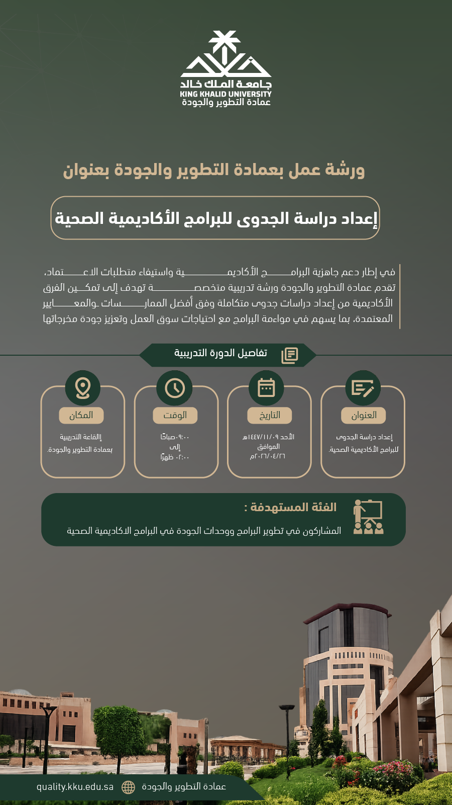 ورشة عمل : إعداد دراسة الجدوى للبرامج الأكاديمية الصحية