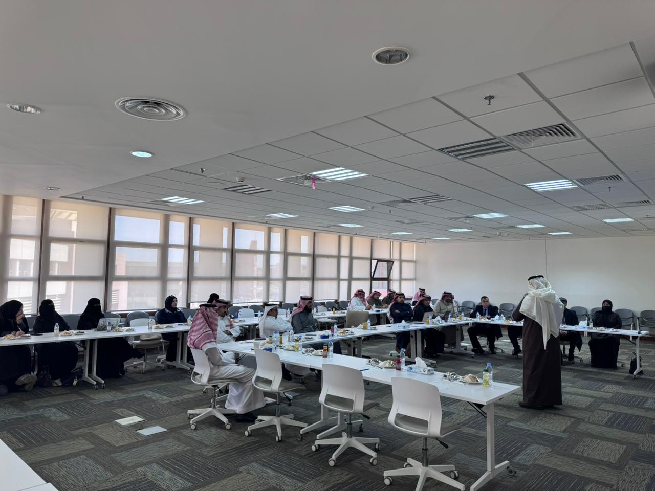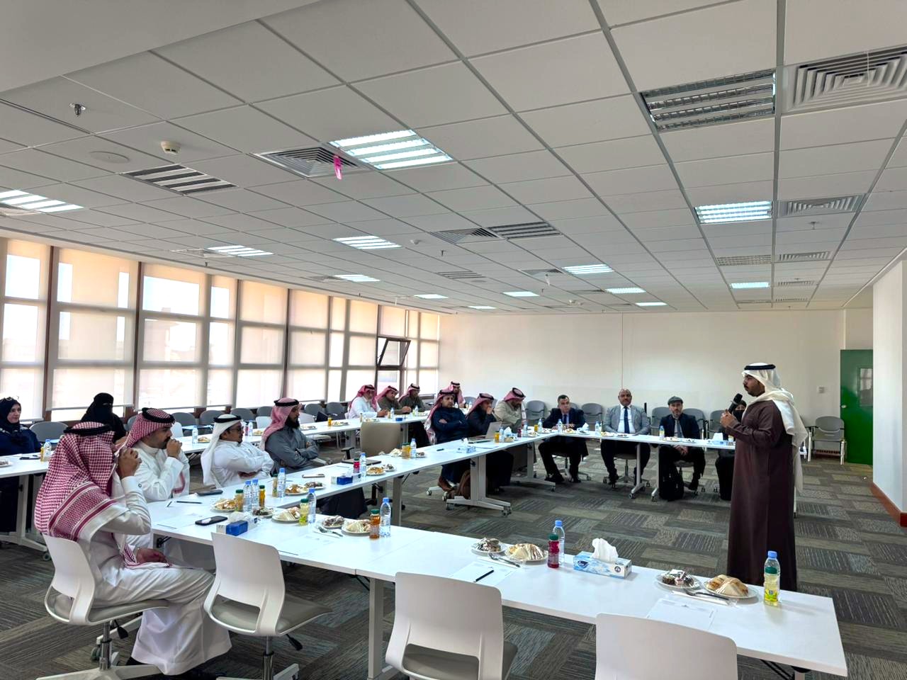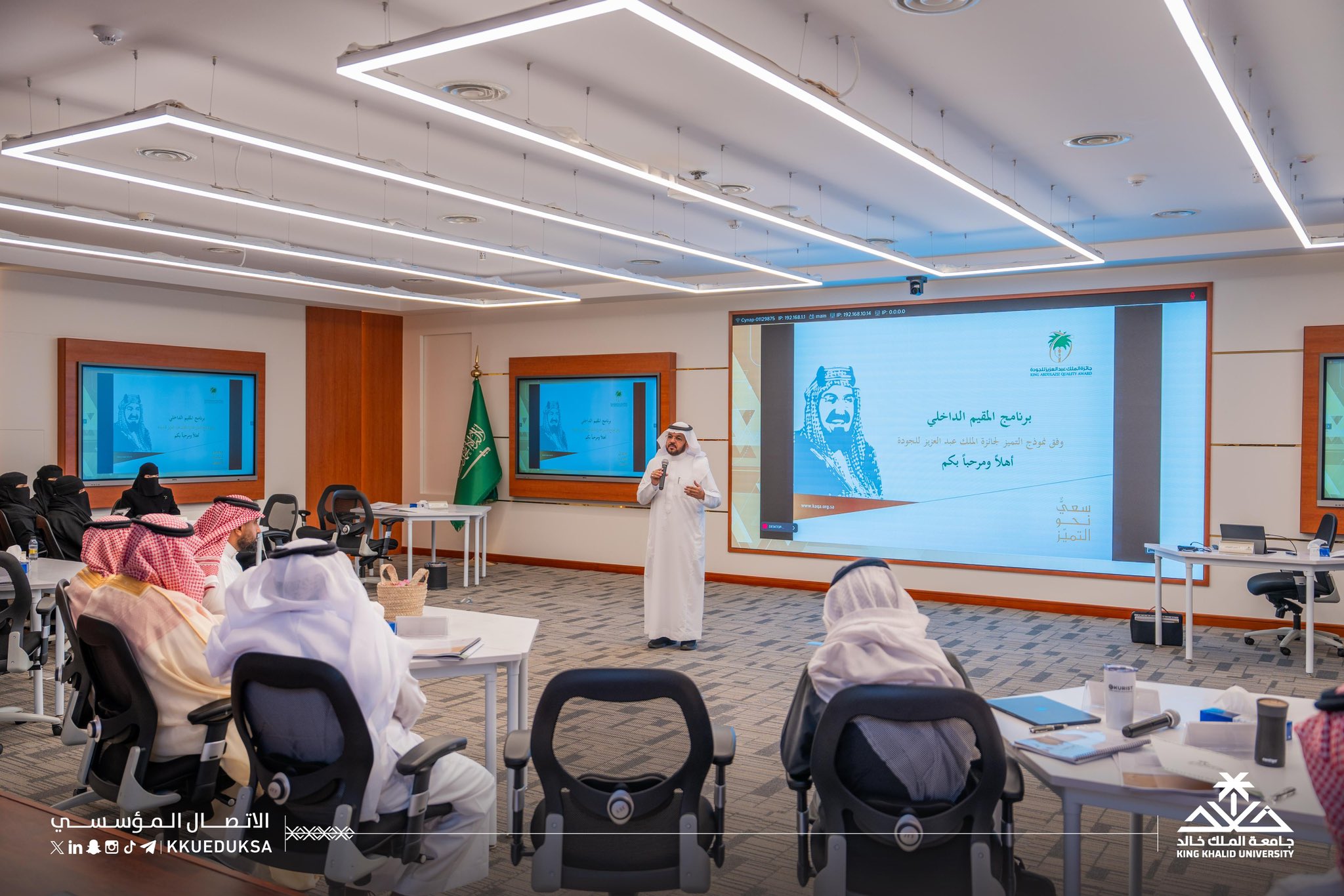 His Excellency the President of King Khalid University, Prof. Dr. Faleh bin Raja Allah Al-Sulami, officially launched the “Internal Auditor” Program on Sunday. The program is delivered by the Deanship of Development and Quality in collaboration with the Saudi Standards, Metrology and Quality Organization (SASO), in the presence of the Vice President for Academic Affairs, Prof. Dr. Saad bin Mohammed bin Dajam. This initiative reflects the University’s strategic commitment to strengthening institutional excellence frameworks and advancing their practical implementation.